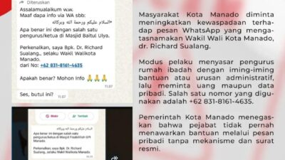Pemkot Manado Tegas: Pesan Pribadi Catut Nama Wakil Wali Kota Richard Sualang Adalah Penipuan