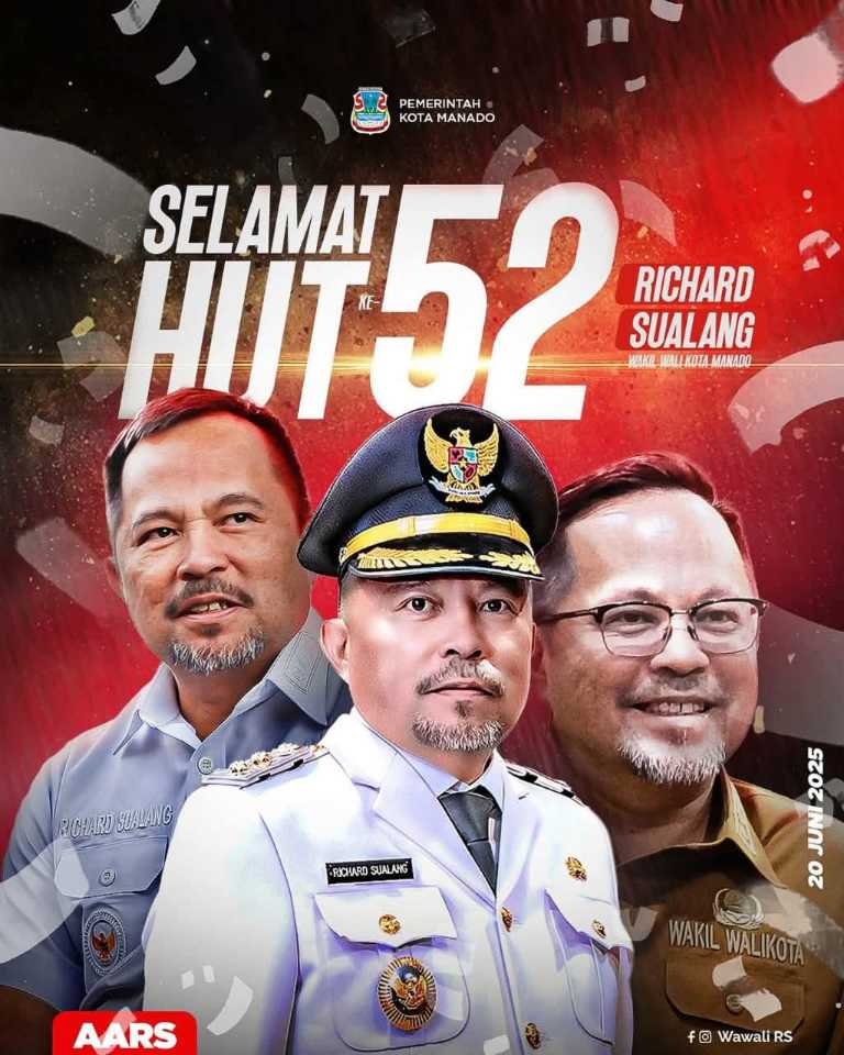 Di ulang tahun ke-52 ini, doa terbaik dipanjatkan untuk beliau: agar Tuhan Yang Maha Kuasa senantiasa melimpahkan kekuatan, kesehatan, dan kebijaksanaan dalam setiap langkah pengabdian. Semoga keberlangsungan tugas dan amanah yang diemban semakin memuliakan nilai-nilai pelayanan, membentuk keteladanan yang membumi, dan membawa Kota Manado menuju masa depan yang lebih maju, lebih sejahtera, dan lebih hebat. Selamat Ulang Tahun Bapak dr. Richard Sualang—semoga bahagia dalam keluarga, kokoh dalam kepemimpinan, dan terus menjadi simbol harapan bagi warga Kota Manado. (Om Lole)
