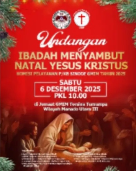 MANADO, NyiurNews.com – Komisi Pelayanan Pria/Kaum Bapa (P/KB) Sinode GMIM akan menggelar Ibadah Perayaan Menyambut Natal Yesus Kristus Tahun 2025 pada Sabtu (6/12/2025), pukul 10.00 Wita, di GMIM Torsina Tumumpa, Wilayah Manado Utara III. Ibadah tersebut dirancang sebagai momentum pembaruan batin jemaat dalam memaknai kelahiran Kristus, sekaligus memperkuat kebersamaan di antara pelayan serta umat.