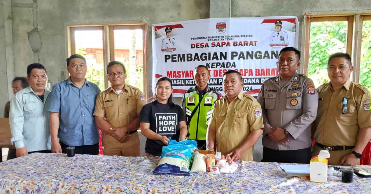 Minahasa Selatan, NyiurNews.com ━ Pemerintah Desa Sapa Barat, Kecamatan Tenga, di bawah kepemimpinan Kepala Desa (Kumtua) Danny Mamangkey, kembali menghadirkan bukti nyata bahwa pembangunan desa berlandaskan pada kesejahteraan masyarakat. Melalui program ketahanan pangan Dana Desa tahun anggaran 2024, sebanyak 360 Keluarga Penerima Manfaat (KPM) menerima bantuan berupa beras, minyak goreng, gula pasir, telur, garam, serta kebutuhan pokok lainnya. Penyaluran bantuan yang berlangsung di Balai Pertemuan Umum (BPU) Desa Sapa Barat pada Selasa, 26 Agustus 2025, menjadi penegasan bahwa anggaran desa dikelola secara tepat sasaran, transparan, dan berorientasi pada kesejahteraan rakyat.