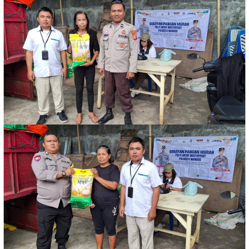 MANADO, NyiurNews.Com — Perum Bulog Sulawesi Utara dan Gorontalo (SulutGo) bersama Polresta Manado dan Polsek Bunaken melaksanakan Gerakan Pangan Murah di wilayah Bunaken. Kegiatan ini digelar untuk memastikan ketersediaan beras terjangkau serta menjaga stabilitas harga di tingkat masyarakat. Kepala Bulog SulutGo, Ermin Tora, mengatakan bahwa langkah ini menjadi bagian dari upaya memperluas akses pangan pokok di daerah kepulauan. “Kami ingin memastikan masyarakat mendapatkan beras dengan harga yang stabil dan terjangkau,” ujarnya.