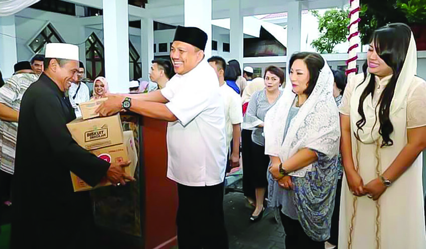 Gubernur Sulut Prof Dr (HC) Olly Dondokambey menyalurkan bantuan usai buka puasa bersama, tahun lalu. (Foto: IStimewa)