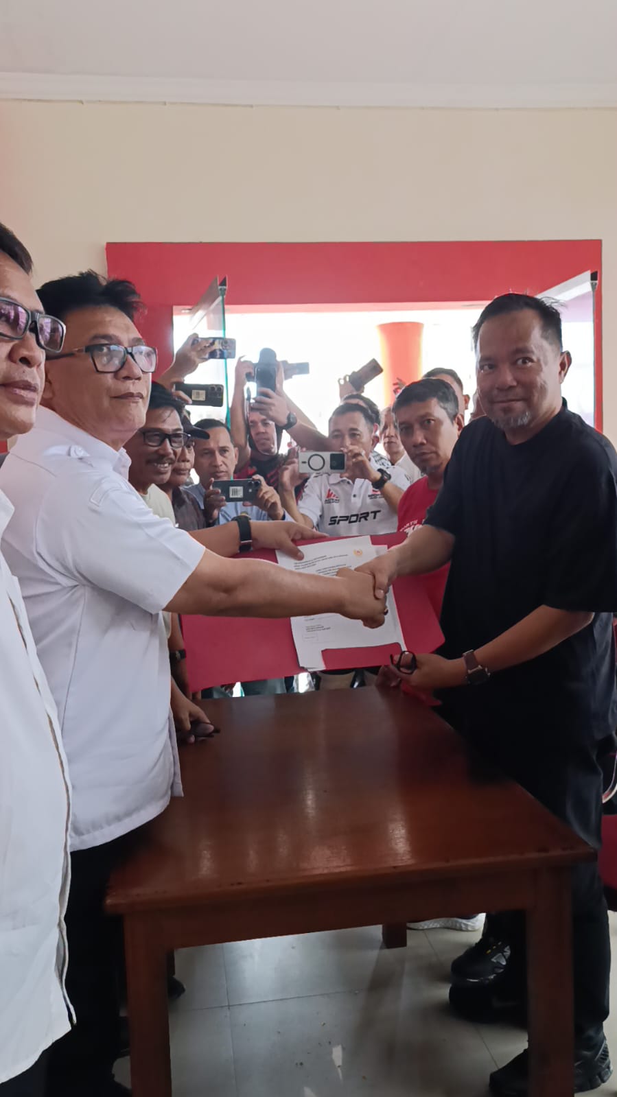 Ket Foto : Richard Sualang menerima formulir pendaftaran Ketua KONI Manado di Youth Center, menandai keseriusannya membangun prestasi olahraga kota. (Ist)