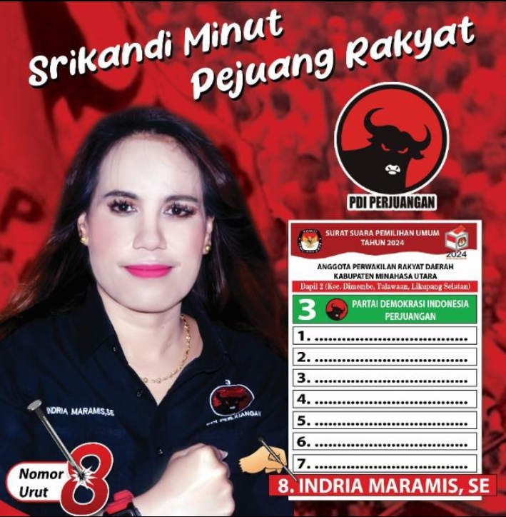 nyiurnews.com-Minut-Calon Anggota Legislatif Dapil Minahasa utara Nomor Urut 8 dari Partai PDI-P Indria Maramis SE, mengajak generasi Milenial Muda Mudi Minut agar mau menyuarakan aspirasinya dalam Pilkada 14 Februari nanti. Hal tersebut agar generasi muda dapat menyuarakan inspirasinya menjadi intelektual dengan memegang teguh amanah bangsa
